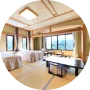 畳のやすらぎとベッドの快適さを併せ持つ和洋室。ご家族でもゆったりと寛げます。