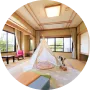 畳の上でのびのびと過ごせる広々としたお部屋に、お子様が楽しめるおもちゃをご用意しました。備え付けや貸出品もそろっているので、ご家族皆様で安心して快適にお過ごしいただけます。